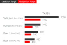 - Дальность обнаружения объектов: (1,8х0,5м) — 1400 м, (2,3х2,3м) – 3000м;