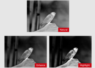 Три режима работы: Enhance, Highlight, Natural. Активируйте один из визуальных эффектов с индивидуальными заводскими настройками контраста и подавления шумов для лучшего отображения.
